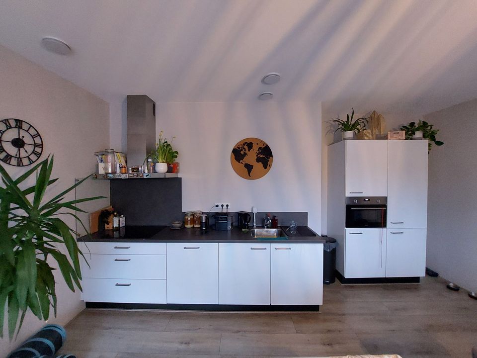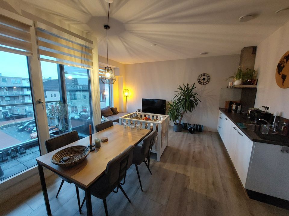 Entree, alle vertrekken zijn bereikbaar vanuit de gang. 1 slaapkamer, badkamer met inloopdouche, wastafel en designradiator, separaat toilet. Een woonkamer met toegang tot het balkon, open keuken voorzien van een koel-vriescombinatie, combi-oven/magnetron, vaatwasser, inductiekookplaat en een afzuigkap.