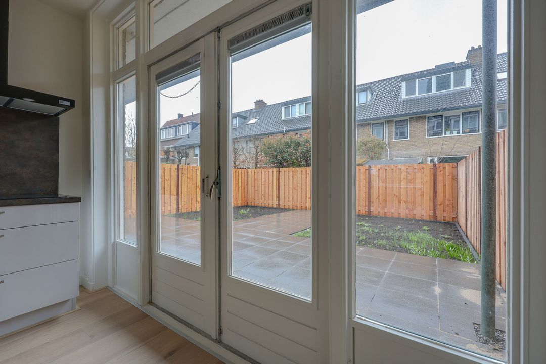 Via de openslaande deuren heeft u toegang tot de ruime - tevens gerenoveerde - tuin.