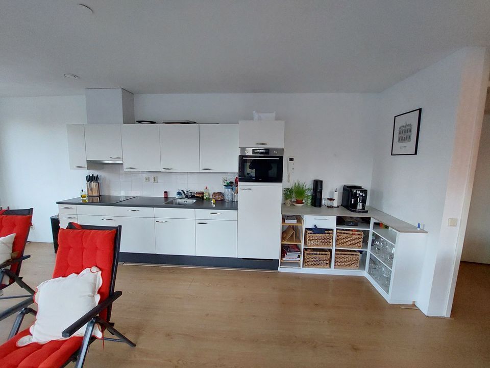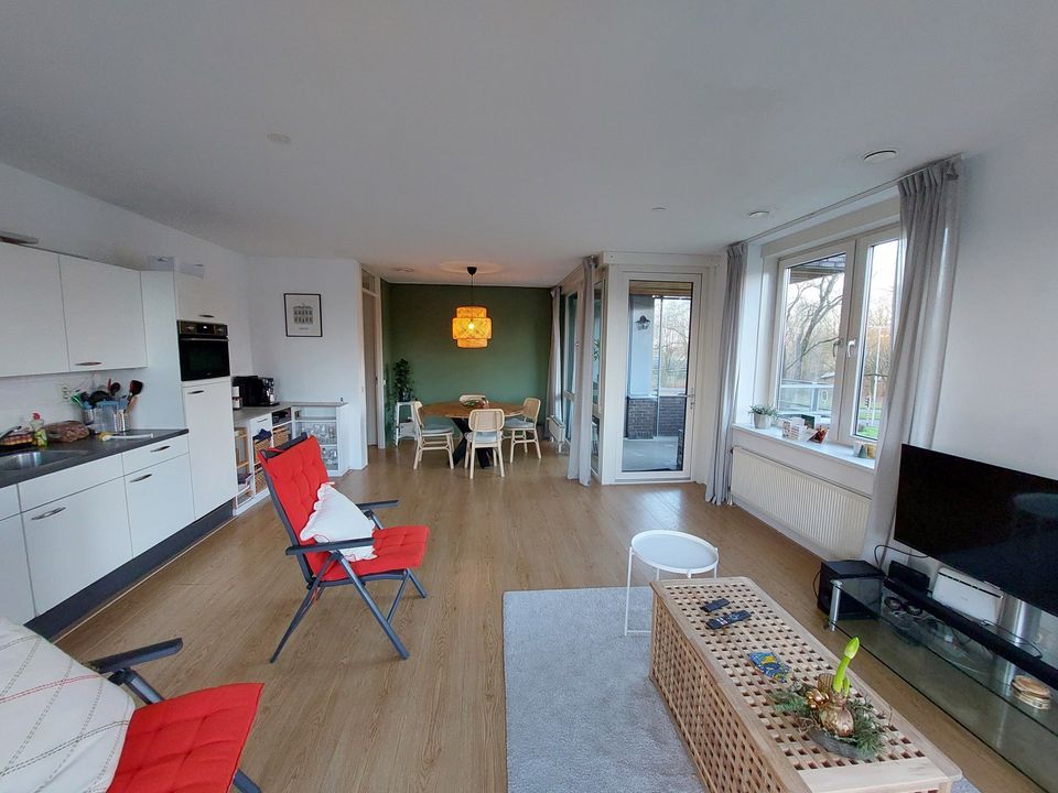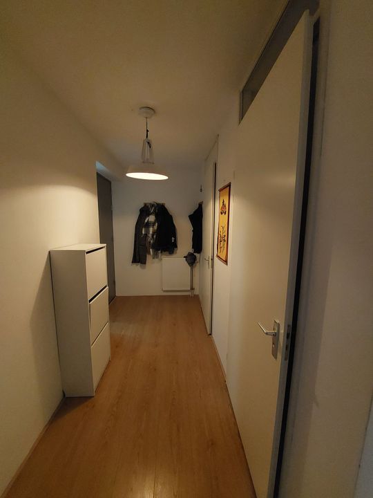 Entree, alle vertrekken zijn bereikbaar vanuit de gang. Een slaapkamer, separaat toilet, ruime badkamer met douche, toilet en dubbele wastafel. Een ruime woonkamer met toegang tot balkon, open keuken voorzien van een koelkast, combimagnetron, vaatwasser, keramische kookplaat en afzuigkap.