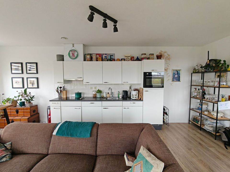 Entree, alle vertrekken zijn bereikbaar vanuit de gang. Eén slaapkamer, separaat toilet, ruime badkamer met douche en wastafel. Een ruime woonkamer met toegang tot balkon, open keuken voorzien van een koelkast, combimagnetron, vaatwasser, keramische kookplaat en afzuigkap.