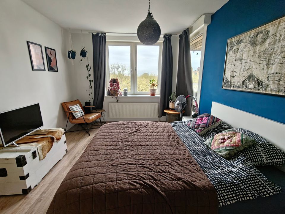 In de groene wijk Overvecht gelegen goed onderhouden 2-kamer appartement op de 5e verdieping met een eigen parkeerplaats in de privé parkeergarage. De woning is voorzien van bergruimte, zowel in de woning als een eigen (fietsen-)berging op de begane grond. Winkels zijn op loopafstand te bereiken, uitvalswegen zijn snel bereikbaar.
