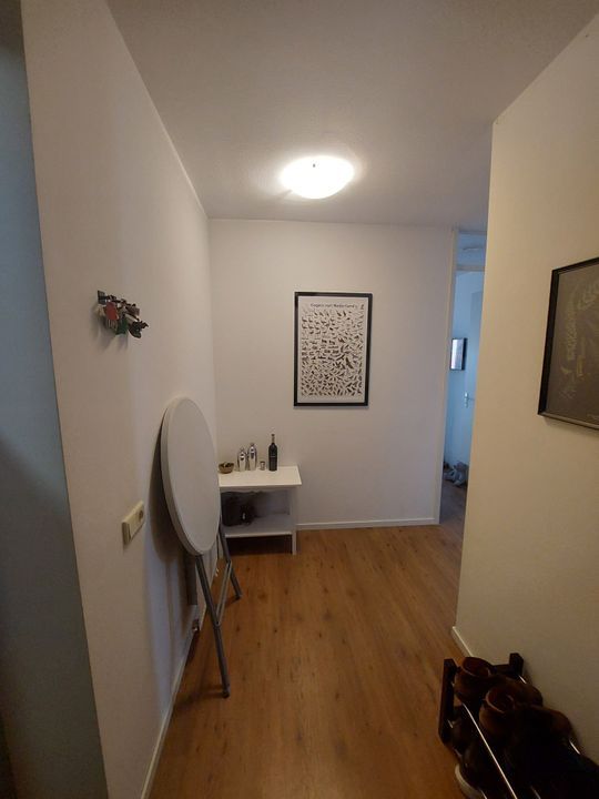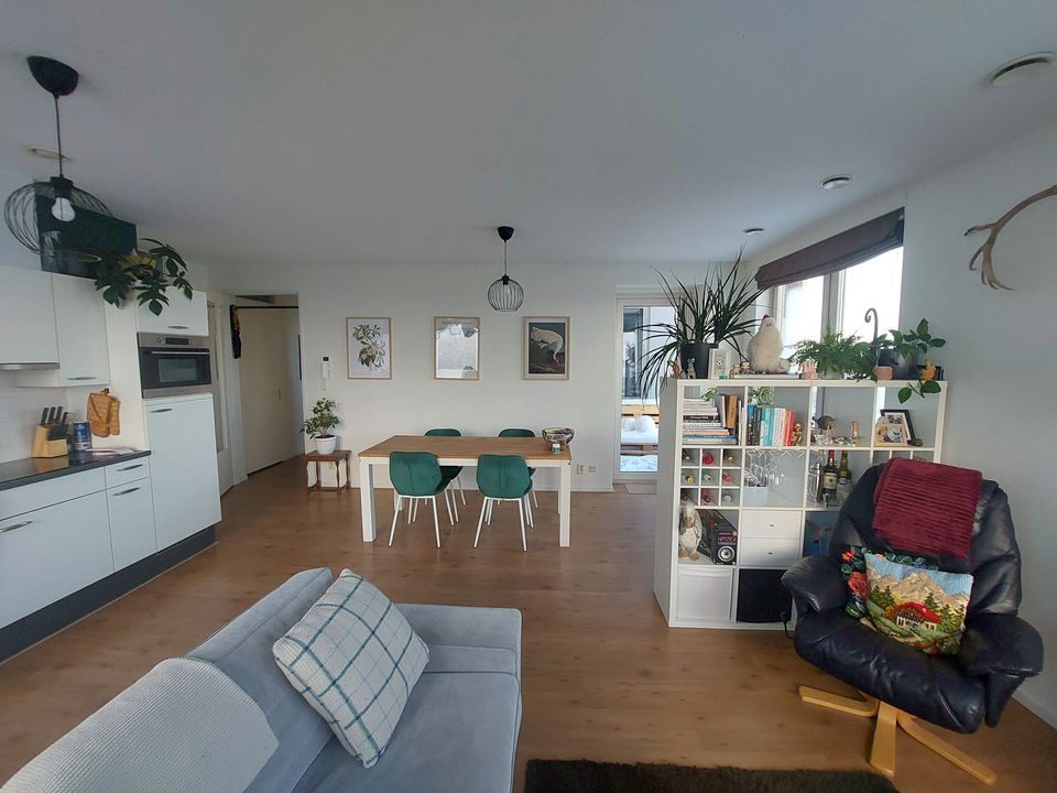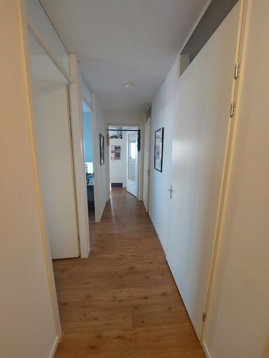 Entree, alle vertrekken zijn bereikbaar vanuit de gang. Twee slaapkamers, separaat toilet, ruime badkamer met douche en wastafel. Een ruime woonkamer met toegang tot balkon, open keuken voorzien van een koelkast, combimagnetron, vaatwasser, keramische kookplaat en afzuigkap.