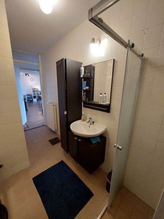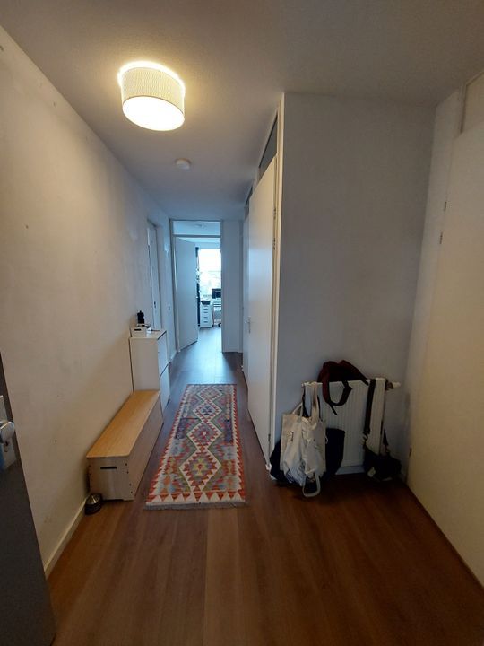 Entree, alle vertrekken zijn bereikbaar vanuit de gang. Twee slaapkamers, separaat toilet, ruime badkamer met douche en wastafel. Een ruime woonkamer met toegang tot balkon, open keuken voorzien van een koelkast, combimagnetron, vaatwasser, inductiekookplaat en afzuigkap.