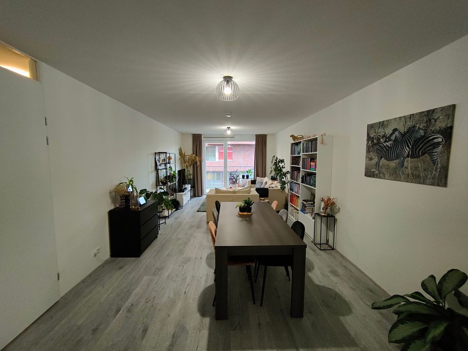 Entree/hal met toegang tot een ruime woonkamer met open keuken, voorzien van: koel-/vriescombinatie, oven/magnetron, vaatwasser, kookplaat en afzuigkap. Het balkon is via de woonkamer te bereiken. De 2 slaapkamers, de badkamer met douche, wastafel en radiator, het separate toilet en de berging (ruimte voor wasmachine en droger) zijn bereikbaar via de hal.