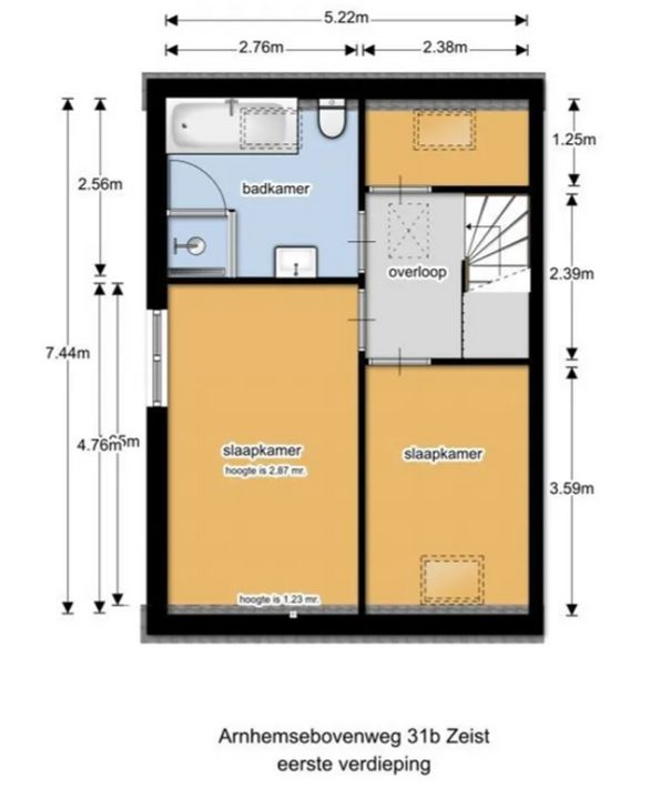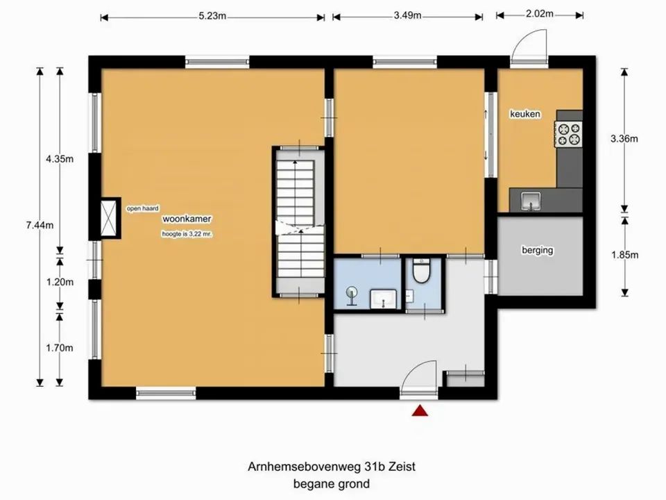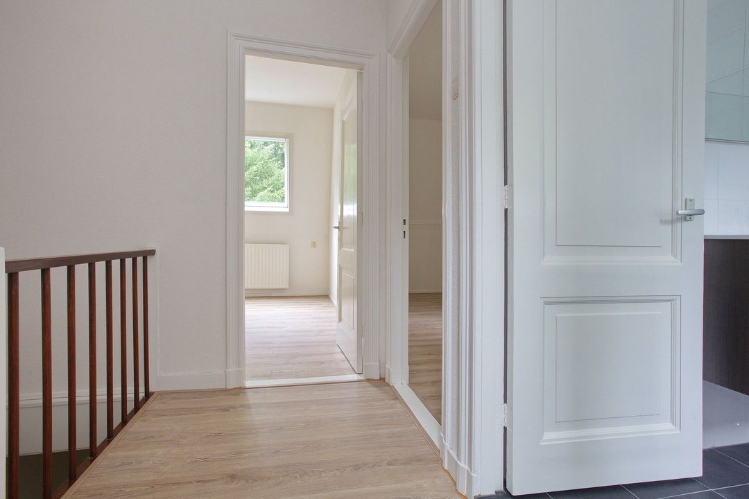 Entree, hal, separaat toilet, ruime woonkamer met parketvloer en gas openhaard, eetkamer met moderne half open keuken, voorzien van inbouwapparatuur (koel-vriescombinatie, vaatwasser, combimagnetron, gaskookplaat en afzuigkap). Twee ruime slaapkamers met laminaatvloer, moderne badkamer met inloopdouche, ligbad, wastafel met meubel en vrij hangend toilet, vlizotrap naar de zolder met opstelling combi CV-ketel.